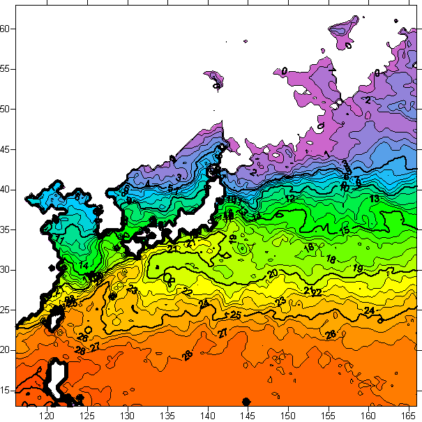 o 2006년 4월 21일 북서태평양 광역해양 수온분포 입니다.
