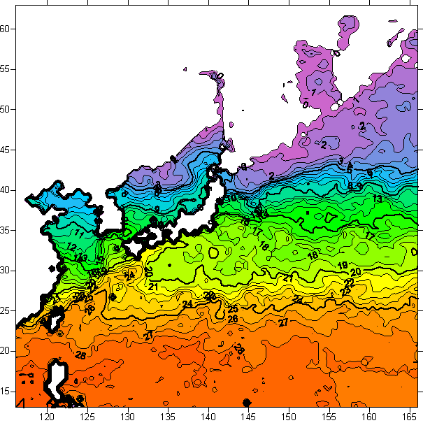 o 2006년 4월 24일 북서태평양 광역해양 수온분포 입니다.