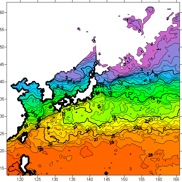 o 2006년 4월 25일 북서태평양 광역해양 수온분포 입니다.