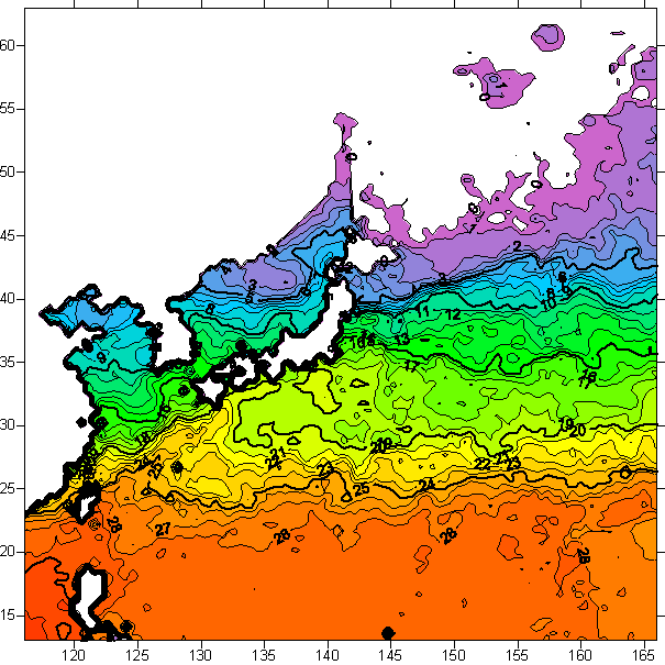 o 2006년 4월 26일 북서태평양 광역해양 수온분포 입니다.