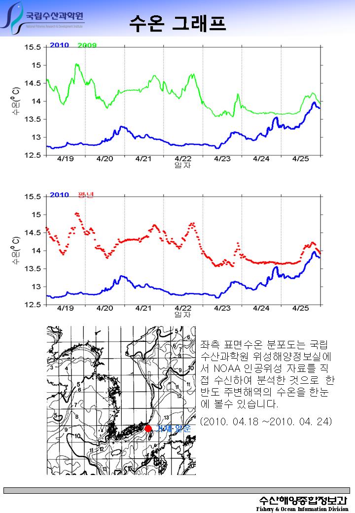 전천후 위성수온 (NGSST) 분포정보 (2010년 04월 25일)