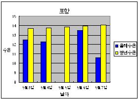 ○ 아래 그래프는 동해 실시간어장정보시스템과 연안정지점에서 관측된 얻어진 동해 중남부(울진, 영덕, 포항) 지역의 표층 수온입니다. ○ 울진은 최근 5일간 일평균 7.7~10도의 수온분포를 보여 13.9~15도의 분포를 보인 전년도와 비교하여 3.9~7.3도 낮은 값이 나타나고 있습니다. ○ 영덕에서는 최근 5일간 일평균 5.7도~7.1도의 수온분포를 보여 13.3~14.9도의 분포를 보인 전년도와 비교하여 6.2~9.2도 낮은 값이 나타나고 있습니다. ○ 포항지역은 평년과 비교해서 0.5~3.4도 낮은 수온분포를 보이고 있습니다. ○ 5월 7일 현재 연안 수온이 크게 낮아져있는 상태이므로 이 일대 양식어업인들께서는 냉수 출현 및 갑작스런 수온변화에 주의해주시기 바랍니다.