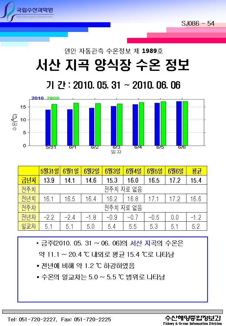 연안 자동관측 수온정보(서산 지곡, 제2089호)