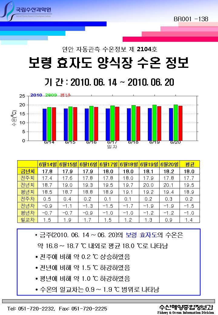 연안 자동관측 수온정보(보령 효자도, 제2104호)
