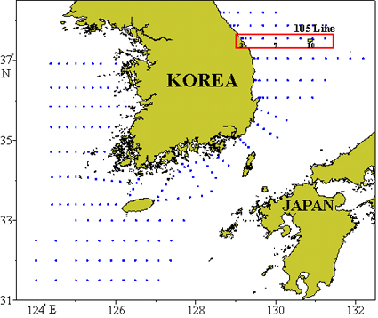ㅇ 수온약층은 연안역에서는 수심 10~50m 부근, 근해역에서는 125m까지 형성되었으며, 뚜렷한 표층 혼합층의 존재는 나타나지 않았습니다. ㅇ 평년에 비하여 연안역 200m 이심층과 외해일부를 제외한 대부분의 해역에서 1~7℃의 저온현상을 나타내었고, 특히 정점 7과 8에서 5℃ 이하로 나타났습니다.
