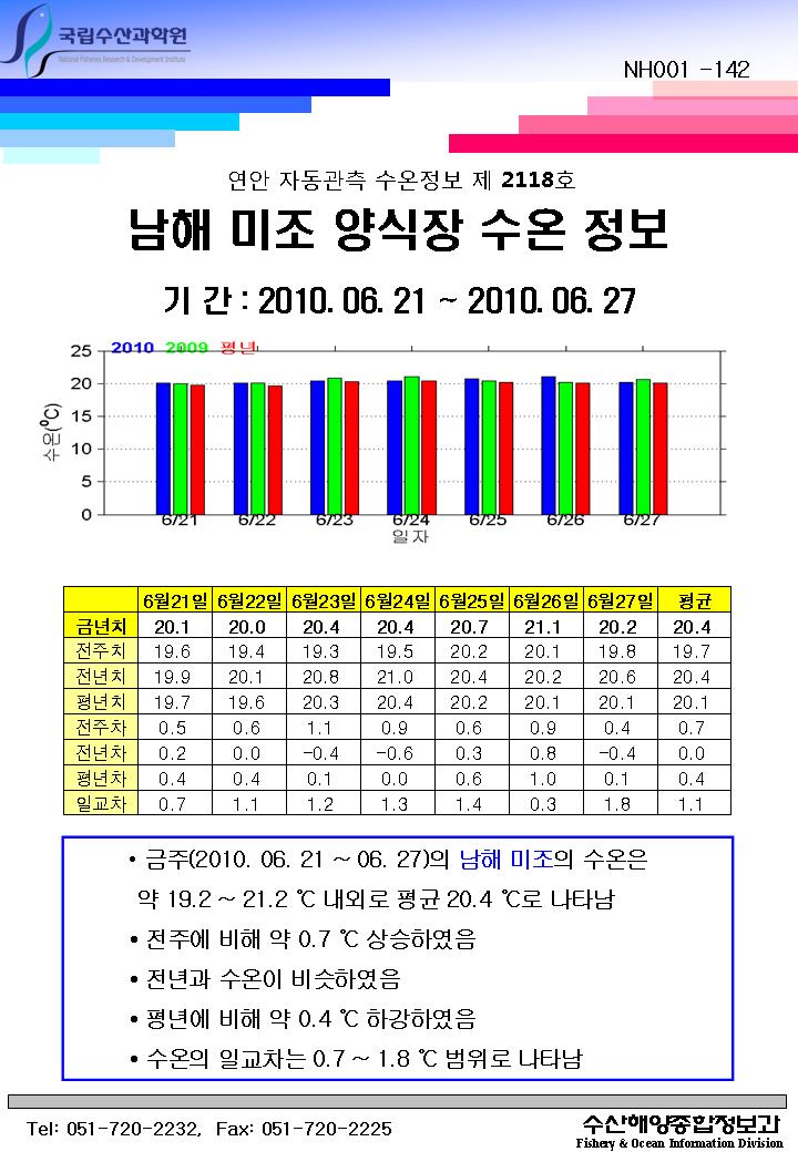 연안 자동관측 수온정보(남해 미조, 제2118호)
