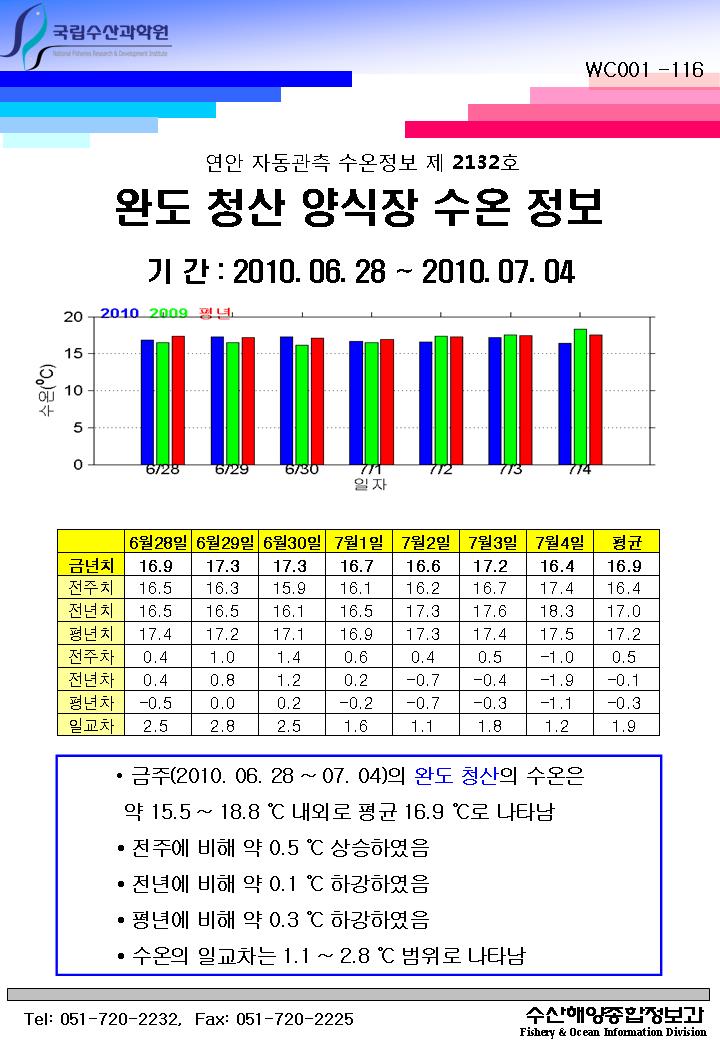 연안 자동관측 수온정보(완도 청산, 제2132호)