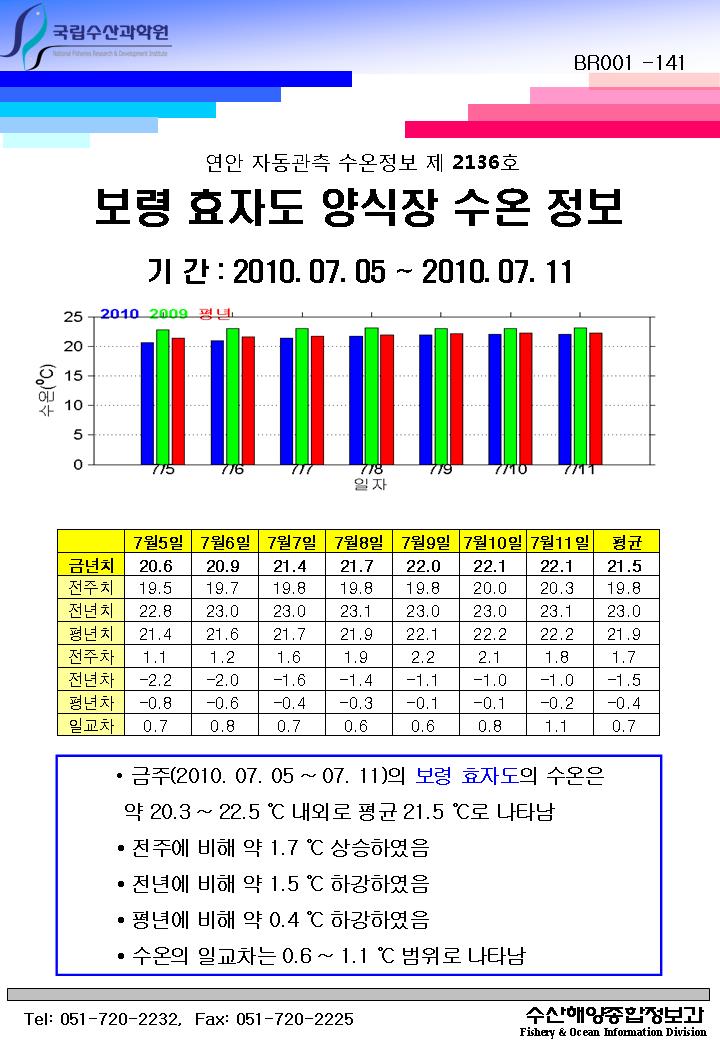 연안 자동관측 수온정보(보령 효자도, 제2136호)