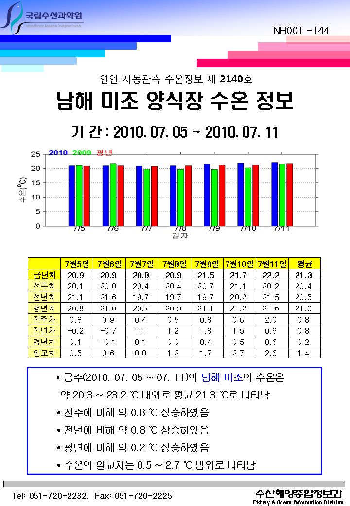 연안 자동관측 수온정보(남해 미조, 제2140호)