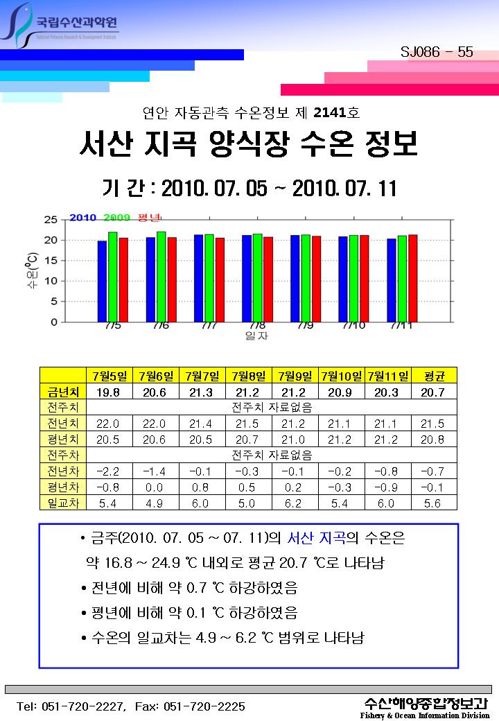 연안 자동관측 수온정보(서산 지곡, 제2141호)