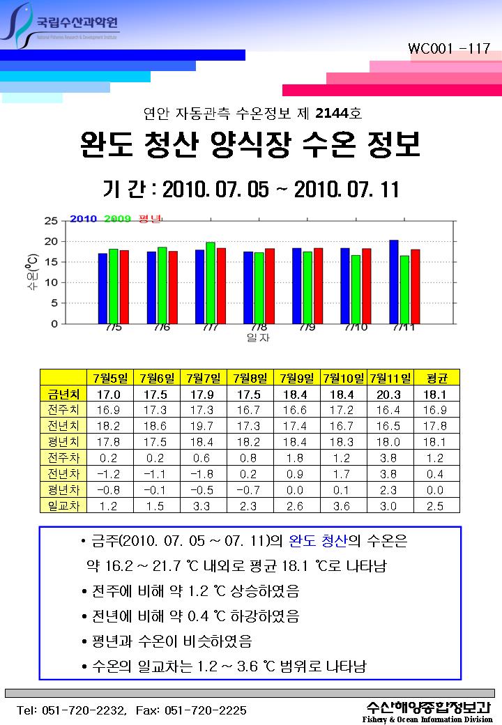 연안 자동관측 수온정보(완도 청산, 제2144호)