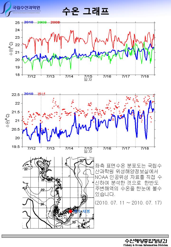 전천후 위성수온 (NGSST) 분포정보 (2010년 07월 22일)