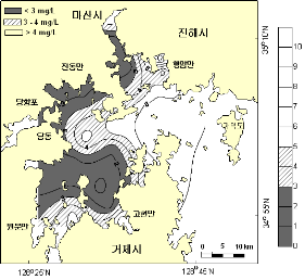 진해만 8.8∼11.7 1.0∼10.2 20∼23 14∼16 31.4∼32.8 33.2∼33.9