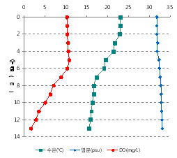 해 역 용존산소 농도(mg/L) 수온(℃) 염분(psu)