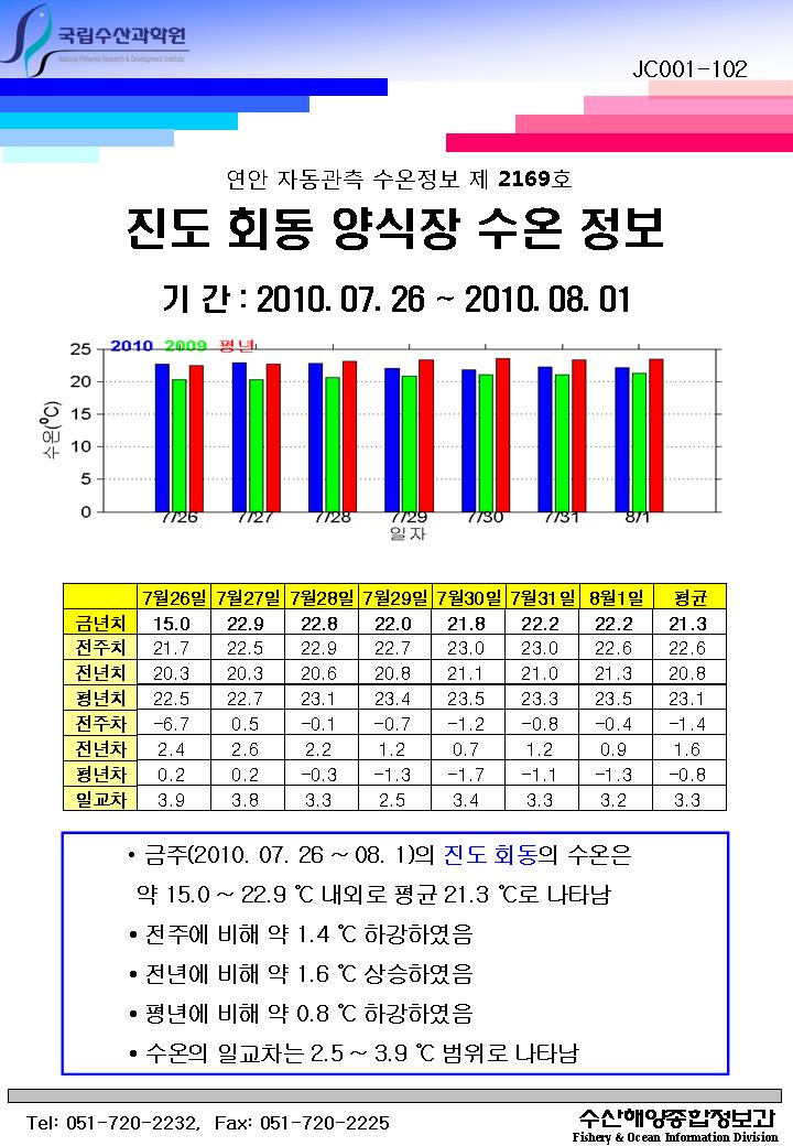 연안 자동관측 수온정보(진도 회동, 제2169호)