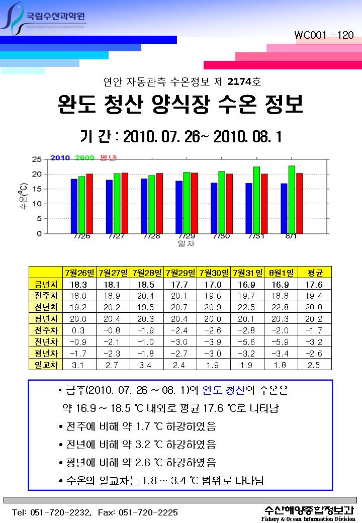 연안 자동관측 수온정보(완도 청산, 제2174호)