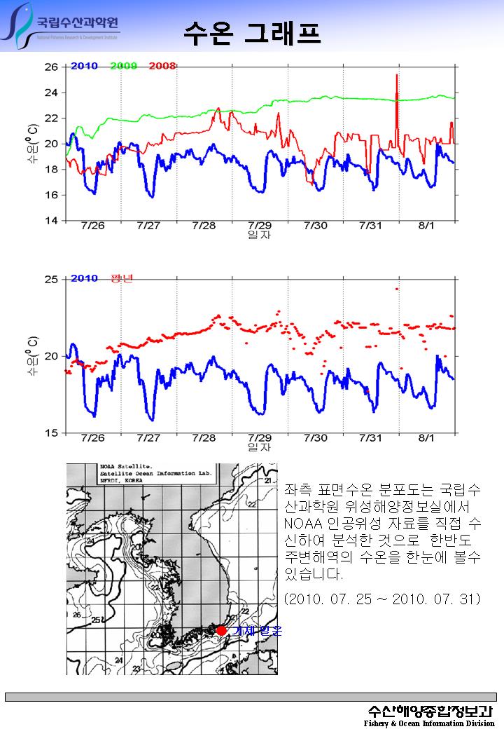 전천후 위성수온 (NGSST) 분포정보 (2010년 08월 02일)