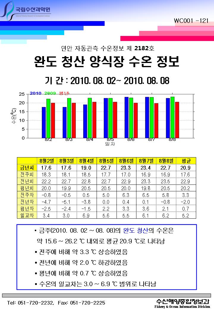 연안 자동관측 수온정보(완도 청산, 제2182호)