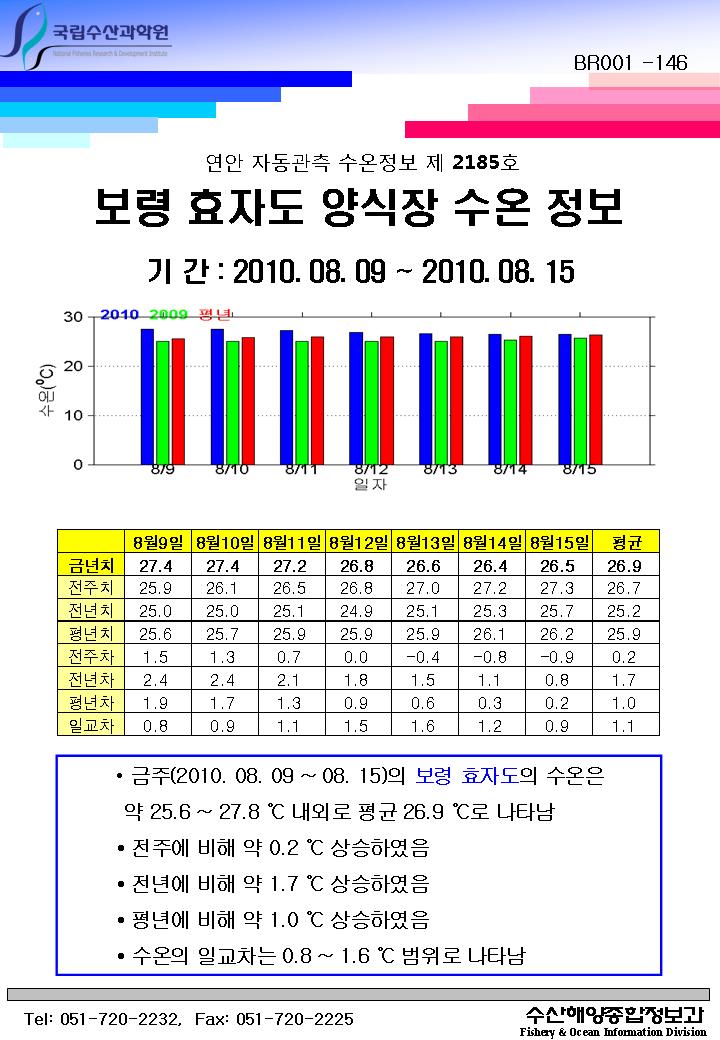 | 연안 자동관측 수온정보(보령 효자도, 제2185호) | |||||