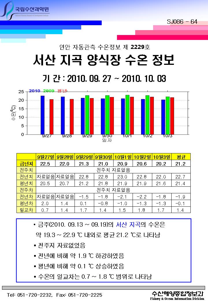 연안 자동관측 수온정보(서산 지곡, 제2229호)