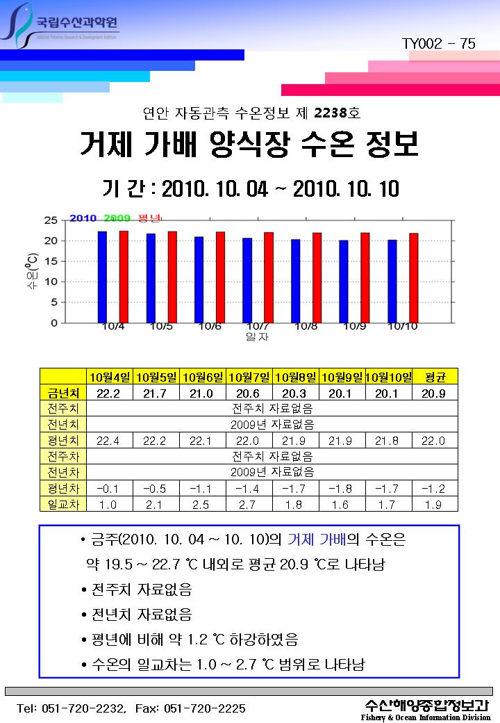 연안 자동관측 수온정보(거제 가배, 제2238호)
