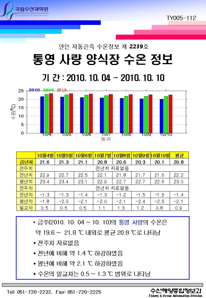 연안 자동관측 수온정보(통영 사량, 제2239호)