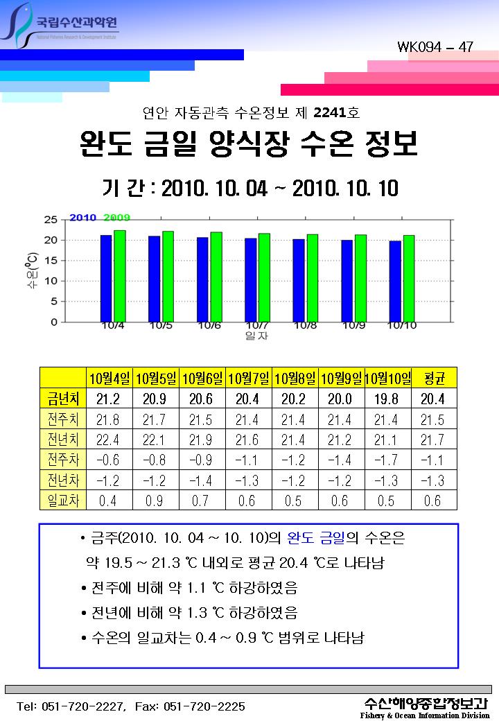 연안 자동관측 수온정보(완도 금일, 제2241호)