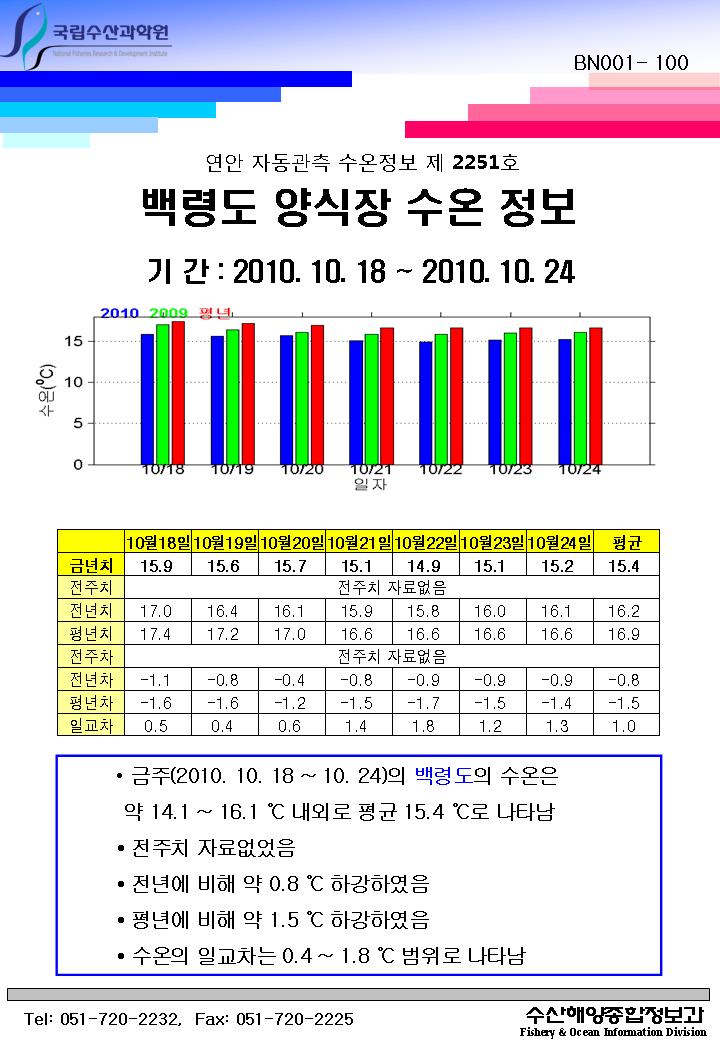 연안 자동관측 수온정보(백령도, 제2251호)