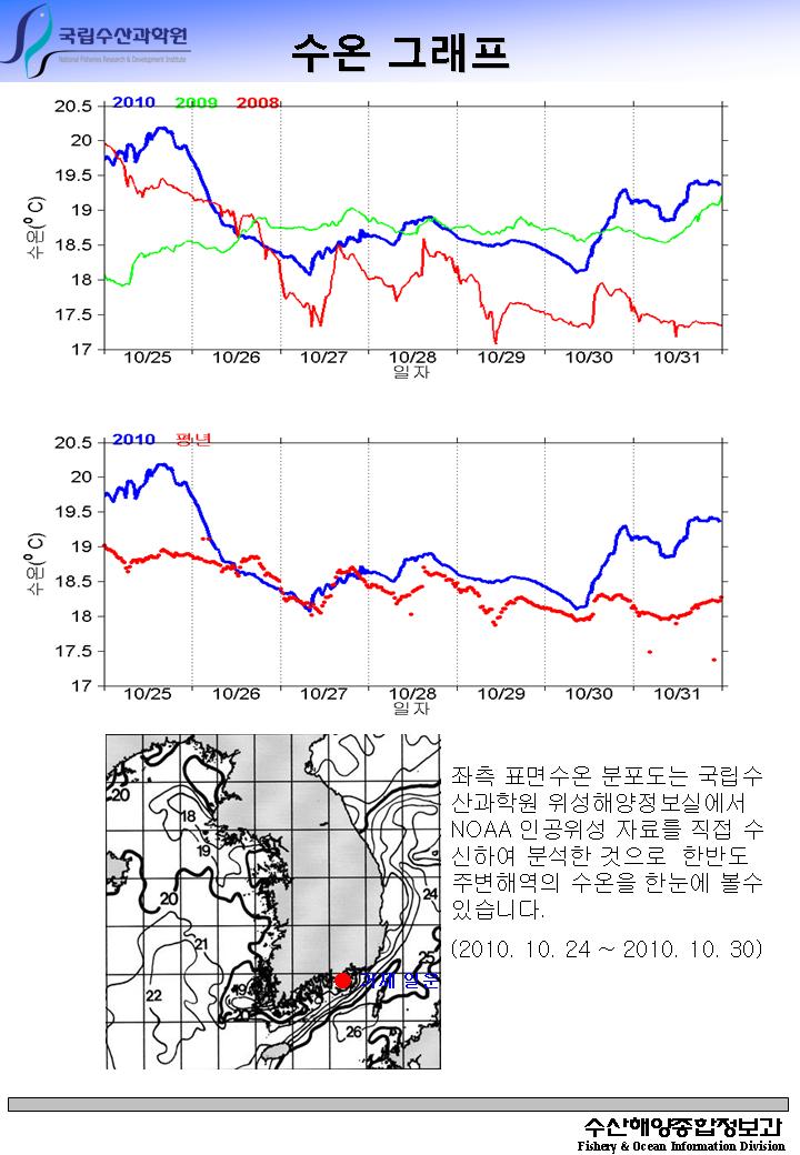 전천후 위성수온 (NGSST) 분포정보 (2010년 11월 02일)