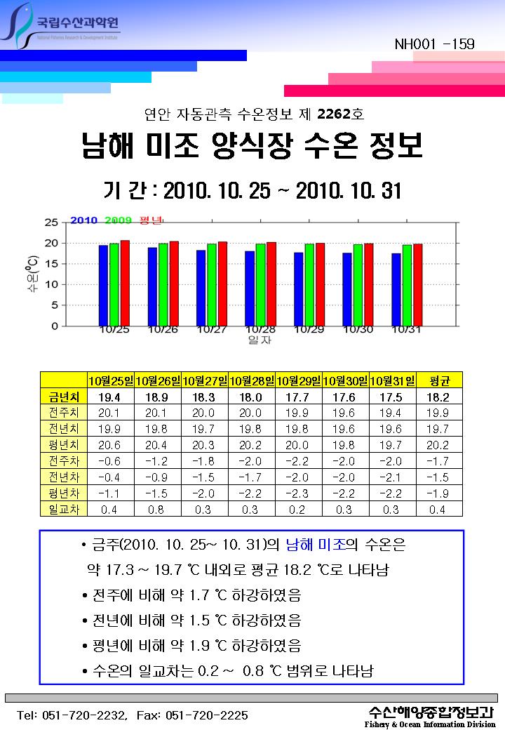 연안 자동관측 수온정보(남해 미조, 제2262호)