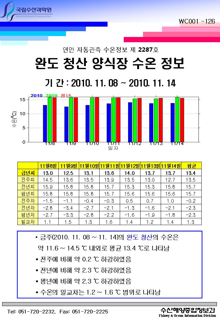연안 자동관측 수온정보(완도 청산, 제2287호)