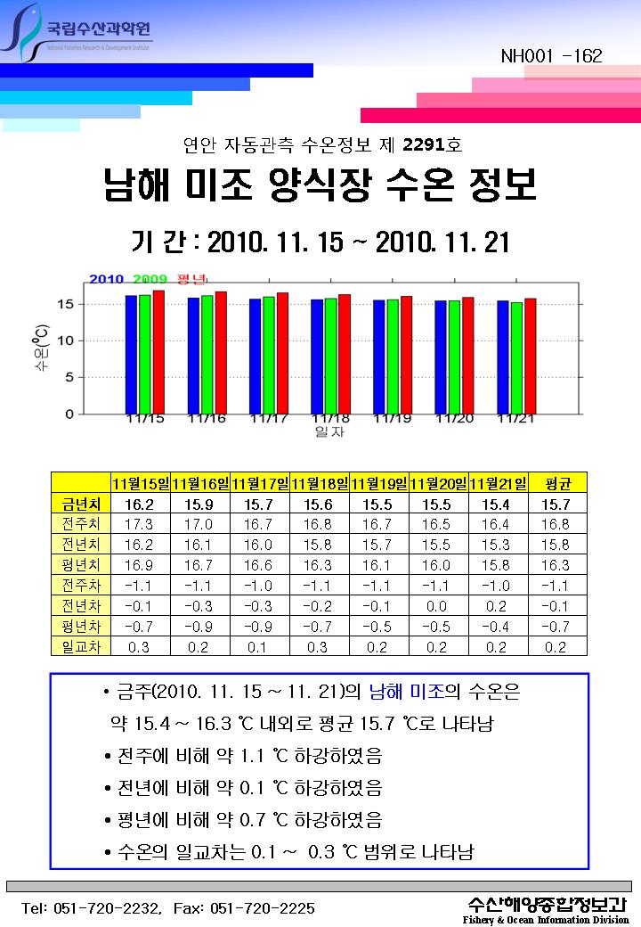 연안 자동관측 수온정보(남해 미조, 제2291호)