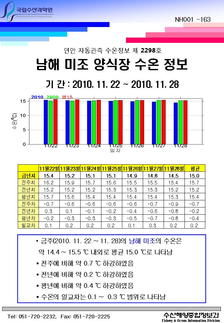 연안 자동관측 수온정보(남해 미조, 제2298호)