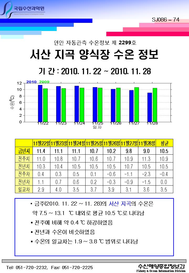 연안 자동관측 수온정보(서산 지곡, 제2299호)