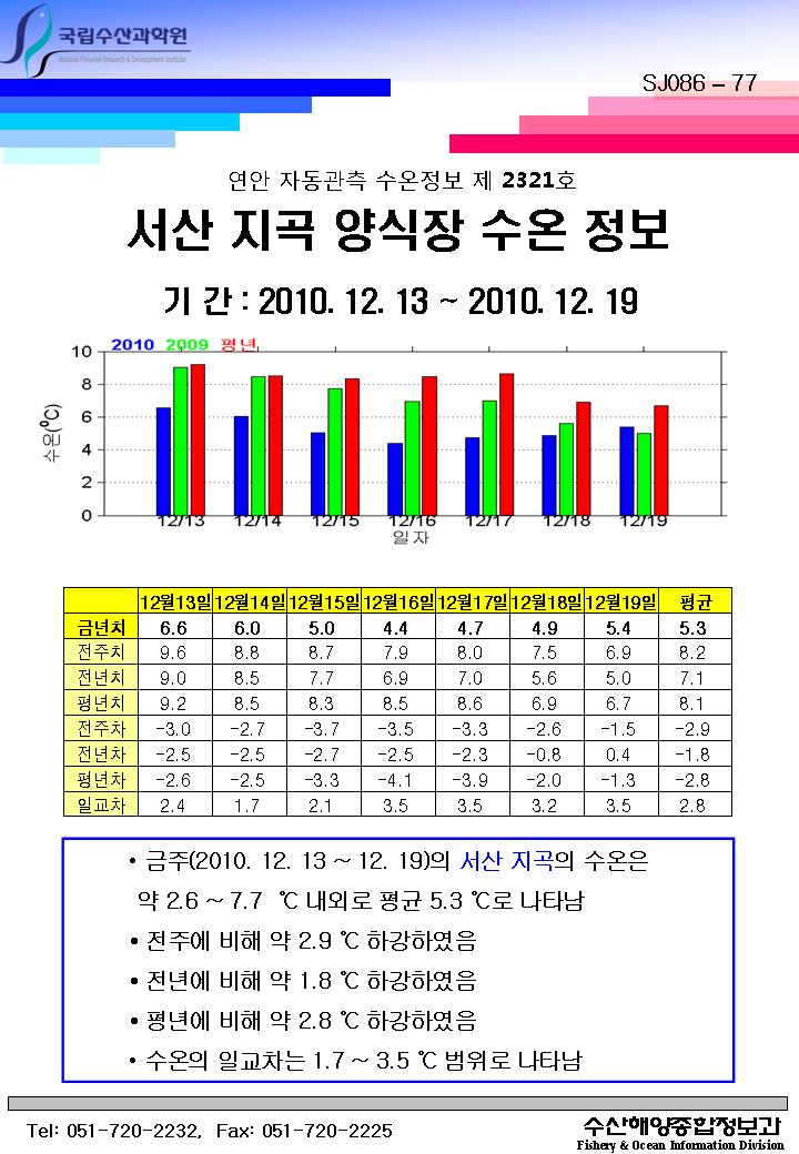 연안 자동관측 수온정보(서산 지곡, 제2321호)