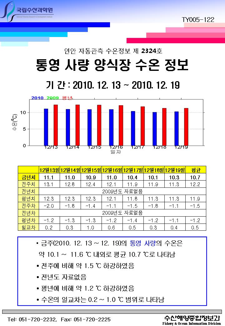 연안 자동관측 수온정보(통영 사량, 제2324호)