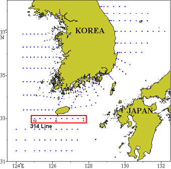 ㅇ 수온약층은 관측해역의 서쪽에서 수심 10∼20m를 중심으로 비교적 강하게 형성되었고, 동쪽으로 갈수록 표층 혼합층이 깊어지고 수온약층이 약해지는 경향을 보였습니다. ㅇ 정점 6을 기준으로 서쪽해역은 평년에 비하여 1℃ 내외의 저온현상을 보였고, 동쪽해역은 1℃ 내외의 고온현상이 나타났습니다.