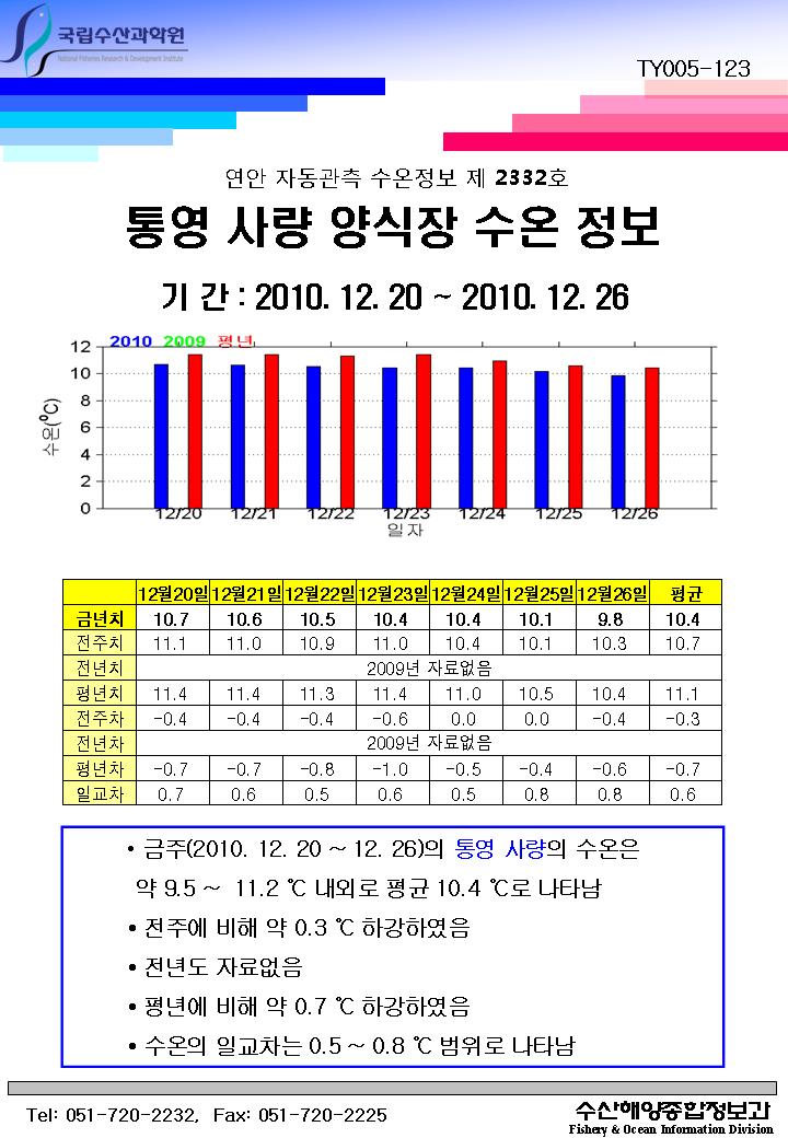 연안 자동관측 수온정보(통영 사량, 제2332호)