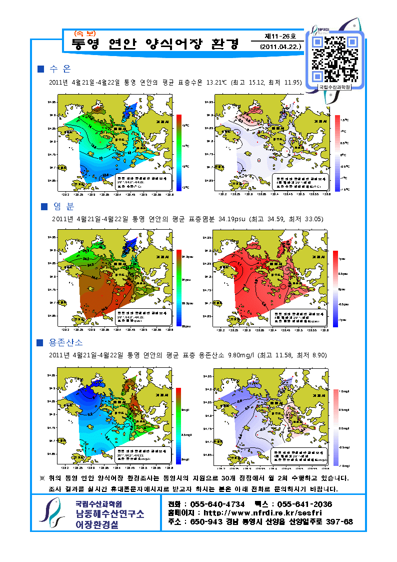 아래 QR코드를 이용하면 과거 통영 연안 양식어장 환경 정보를 보실 수 있습니다