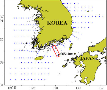 ㅇ 평년에 비하여 정점 2~3의 수심 0∼20m와 정점 4~5의 전 수층에서 0∼1℃ 에서 저온현상을 나타낸 반면, 그 외의 지역에서는 0∼1℃ 내외의 고온현상을 나타내었습니다.