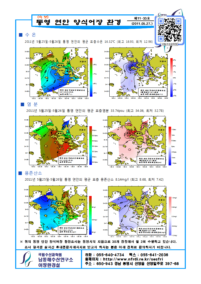 | 통영 연안 양식어장 환경 속보(제11-33호) | |||||
