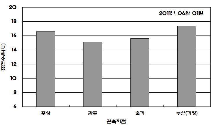 o 2011년 06월 01일 오후 4시를 기해 울기 연안 냉수대 주의보를 해제 합니다. o 2011년 06월 01일 오전 10시 현재 연안 표면수온은 울기 연안에서 15.6℃로 나타나 냉수대 주의보를 해제 합니다. ※ 참고로 울기 연안 냉수대 주의보는 지난 2011년 5월 24일 발령하였습니다. o 냉수대 소멸시 수온 급상승에 따라 양식생물이 피해를 입을 수 있으니 주의하여 주시기 바랍니다.