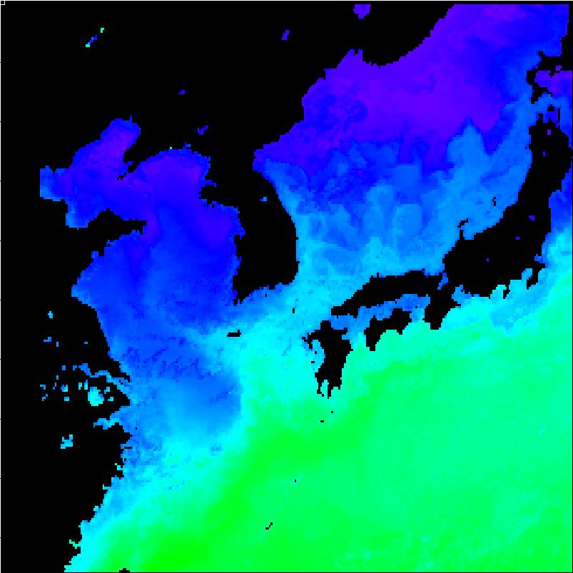 | 구름 제거 수온 영상(2012년 4월 5일) | |||||