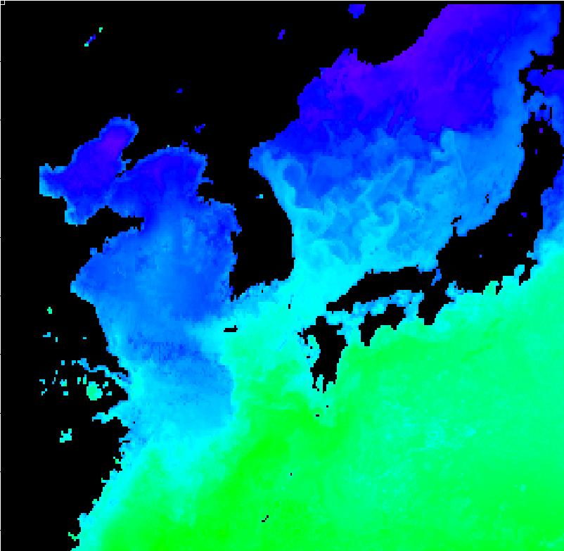 | 구름 제거 수온 영상(2012년 4월 17일) | |||||