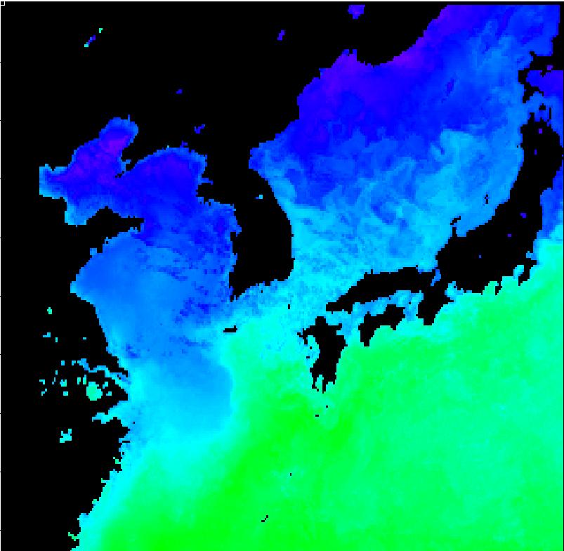 | 구름 제거 수온 영상(2012년 4월 18일) | |||||