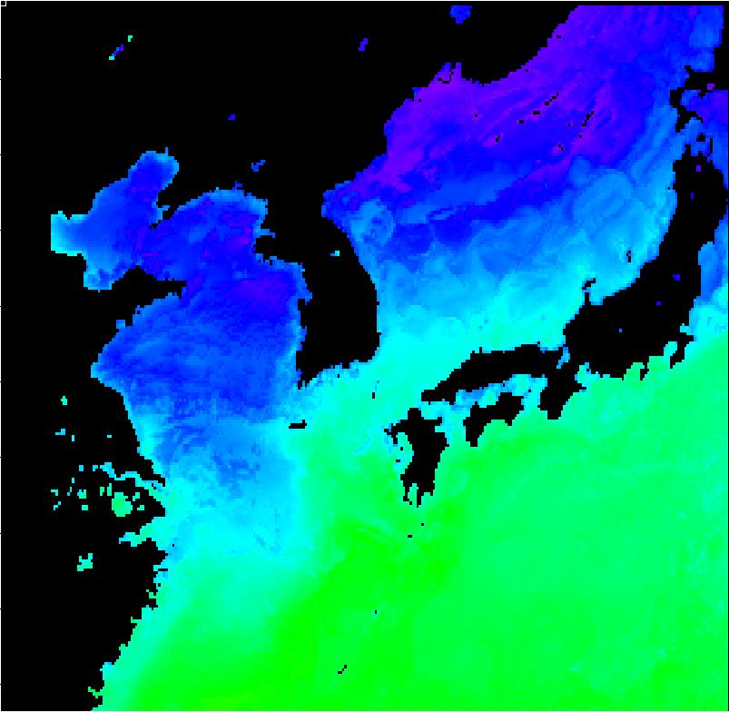 | 구름 제거 수온 영상(2012년 4월 28일) | |||||