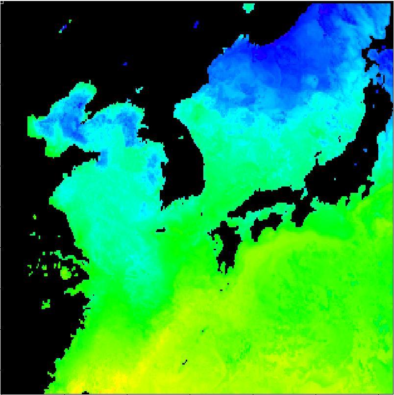 | 구름 제거 수온 영상(2012년 5월 13일) | |||||