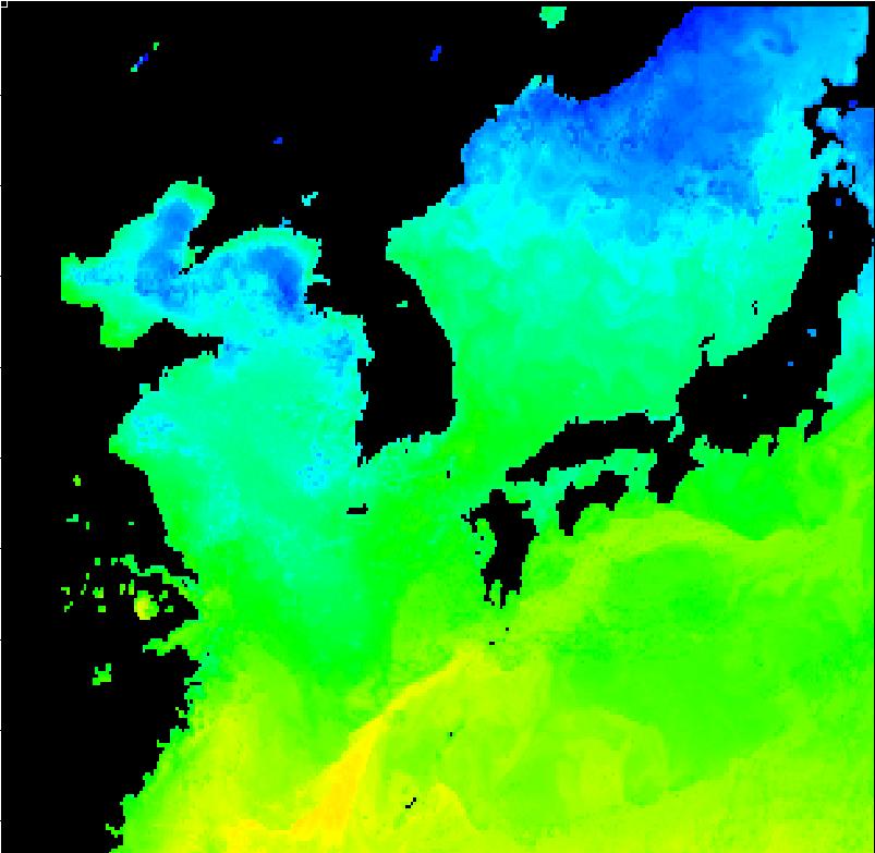 | 구름 제거 수온 영상(2012년 5월 18일) | |||||