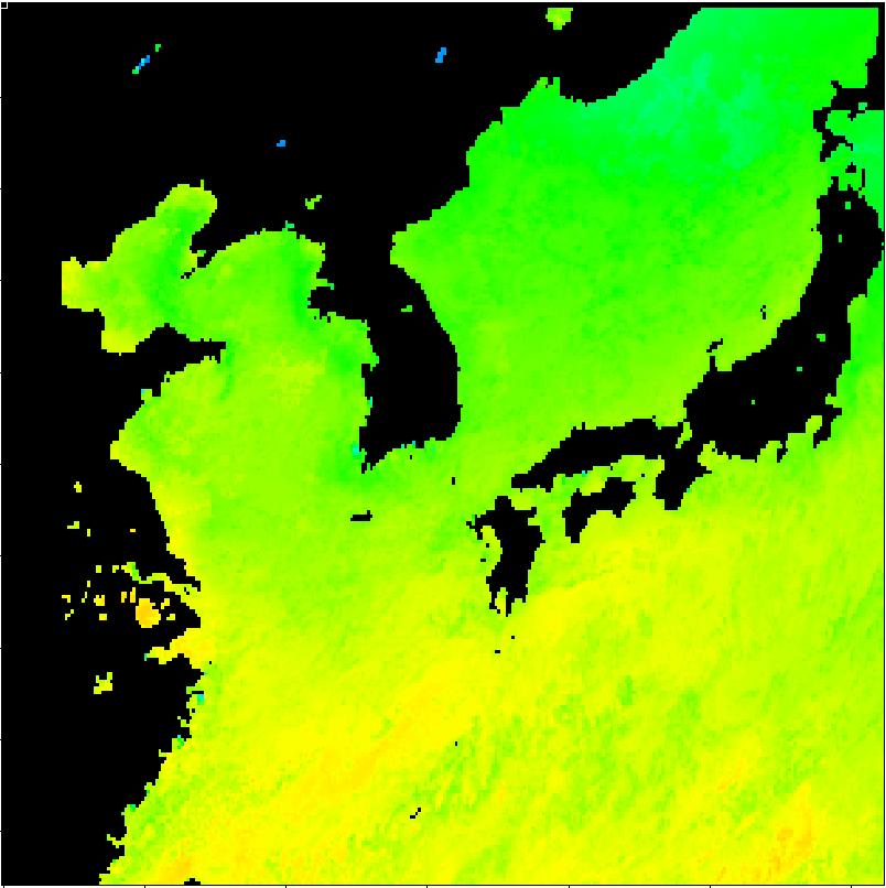 | 구름 제거 수온 영상(2012년 7월 13일) | |||||