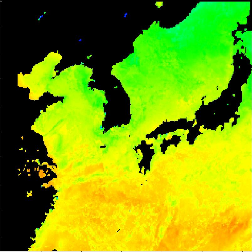 | 구름 제거 수온 영상(2012년 7월 22일) | |||||